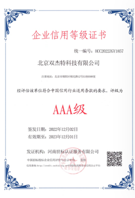 目前,公司已評為高新技術企業(yè),在政府招投標項目中被評為“AAA級信用企業(yè)”和“重合同 守信用企業(yè)”;并已通過了ISO9001質量管理體系認證、ISO14001、ISO18001等系列認證。