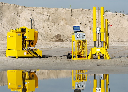 SKID多用途靜力觸探系統(tǒng)是一種固定在平臺(tái)上的操作簡(jiǎn)單的靜力觸探系統(tǒng),其核心是一臺(tái)雙缸液壓動(dòng)力源和HYSON 200kN的貫入裝置。系統(tǒng)采用數(shù)字化IControl數(shù)據(jù)采集系統(tǒng)和Icone數(shù)字探頭。用戶使用很小的投資,仍然可以獲得穩(wěn)定而高質(zhì)量土體勘察數(shù)據(jù)。該系統(tǒng)采用模塊化設(shè)計(jì),可以選擇Hatz靜音液壓動(dòng)力系統(tǒng),也可以選擇PLC控制HYSON 200kN貫入裝置,液壓動(dòng)力源和液壓夾。SKID多用途CPT系統(tǒng)即可用于陸地工程,也可用于近海工程。